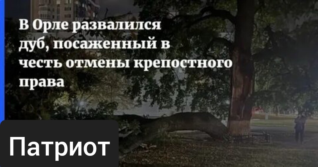 В Орле на Бульваре Победы раскололся дуб, посаженный в 1861 году в честь отмены в Российской империи крепостного права, передает издание «Орел Times».
