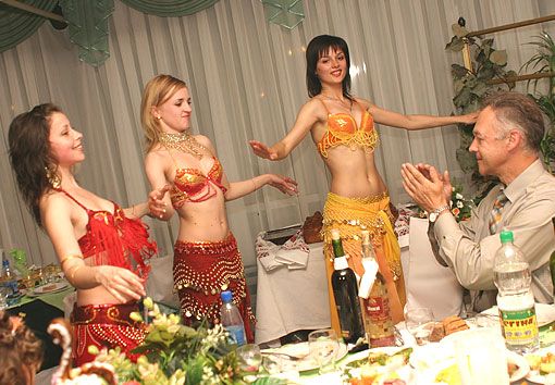 Все успокаивается. Продолжаются танцы. Потерпевший "выставляется" победителям. Бутылка «Абсолюта» в виде контрибуции принимается. Сдвигаются столы. Выпивают уже все вместе. Слышны анекдоты. Раздается смех. И даже танцуют чужих дам. Все улыбаются. Идиллия…