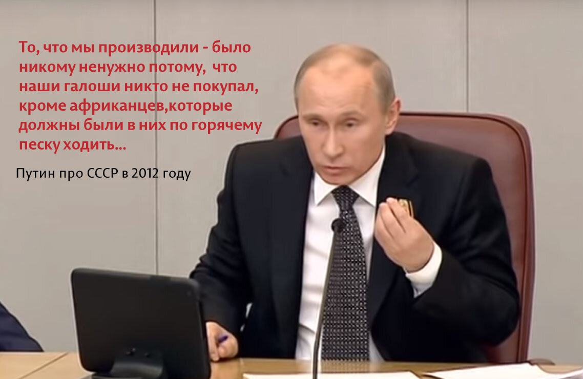 То, что мы производили было НИкому НЕ нужно, потому что галоши НИкто НЕ покупал, кроме африканцев, которые должны были в них по горячему песку ходить... Путин про СССР в 2012 году...