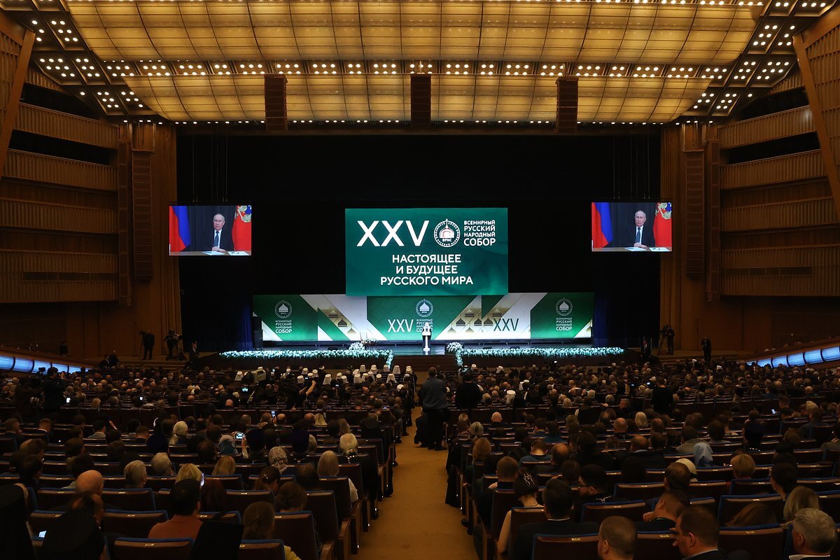 В XXI веке патриарх Кирилл собирает сотни людей на Всемирном русском народном соборе, чтобы поговорить о «Русском мире».