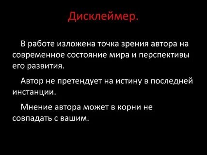 В работе изложена точка зрения автора состояния мира и перспективы его развития....