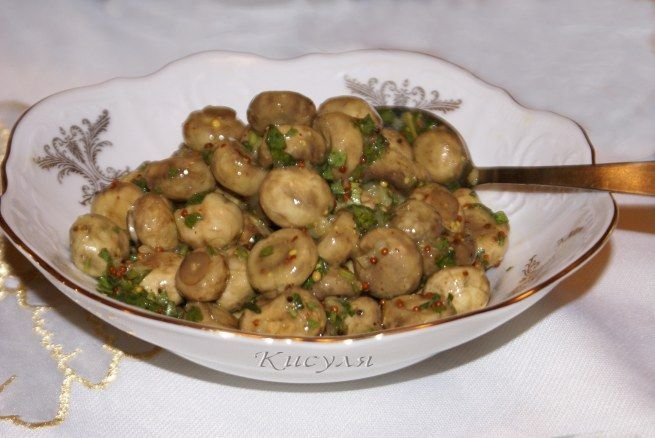 Да именно шампиньоны! Рецепт основан на Том, что именно эти грибы можно есть даже СЫРЫМИ.