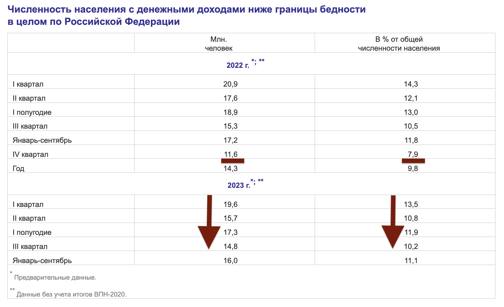 С тех пор почти каждый квартал Росстат отчитывается о снижении численности бедных в России.