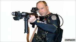 В документе, размещенном в интернете, по всей видимости, Андерсом Берингом Брейвиком, есть его фото с оружием