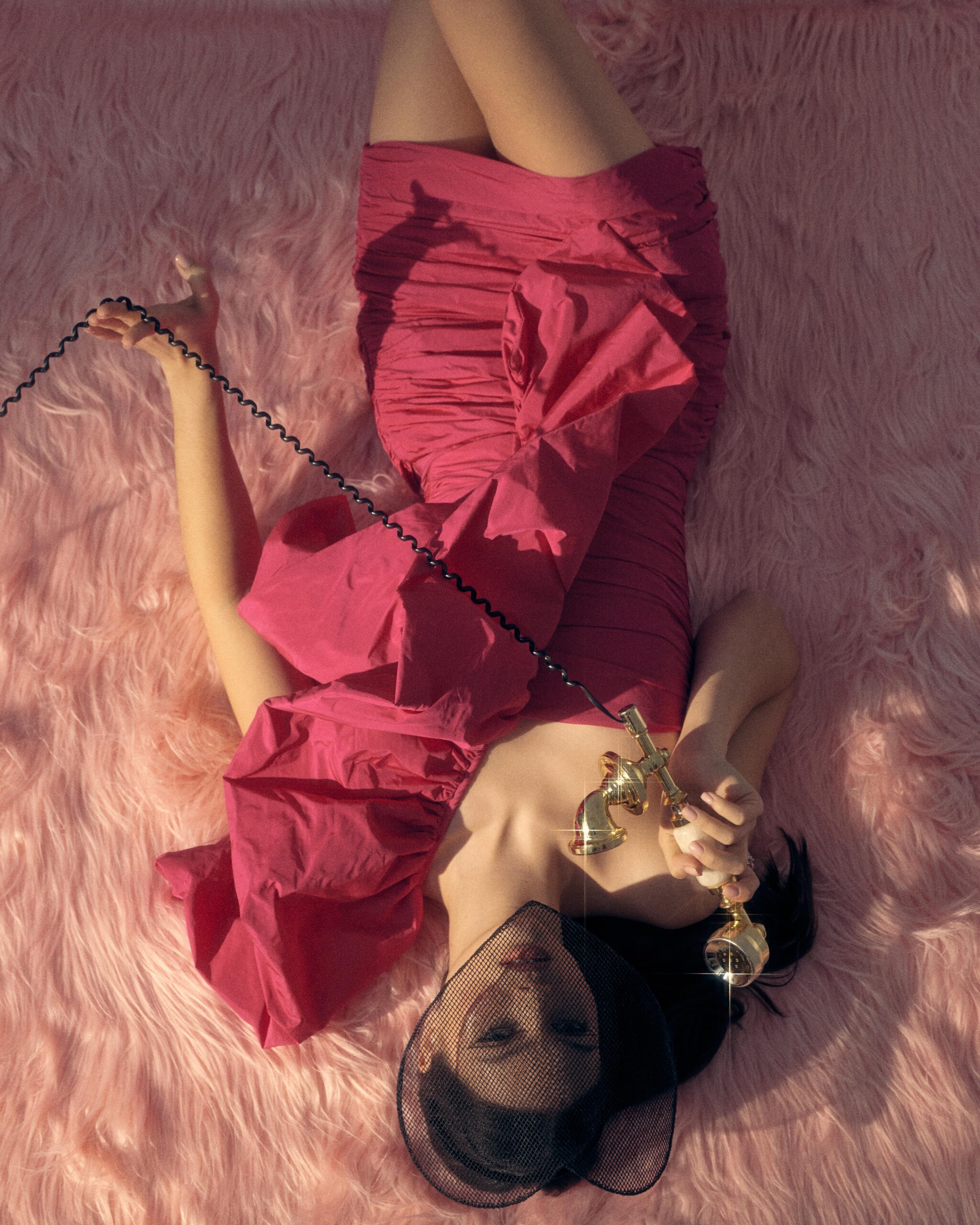 Романтичного настроения коллекции добавили длинные шелковые перчатки в нежно-розовом и черном оттенках.