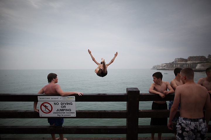 Бродстерс, Великобритания: подростки смотрят, как друг прыгает с причала