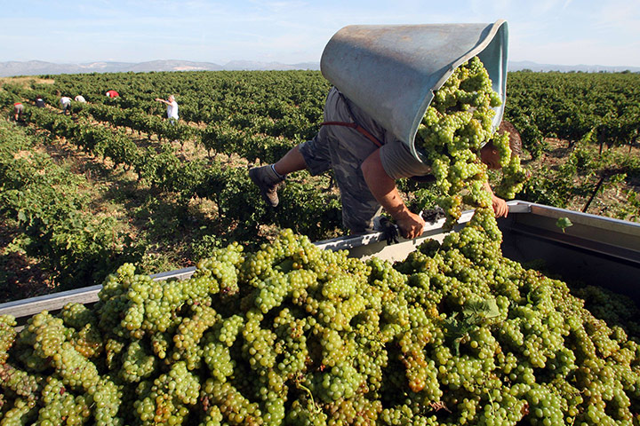 Rivesaltes, Франция: работники собирают первые урожаи винограда для винца