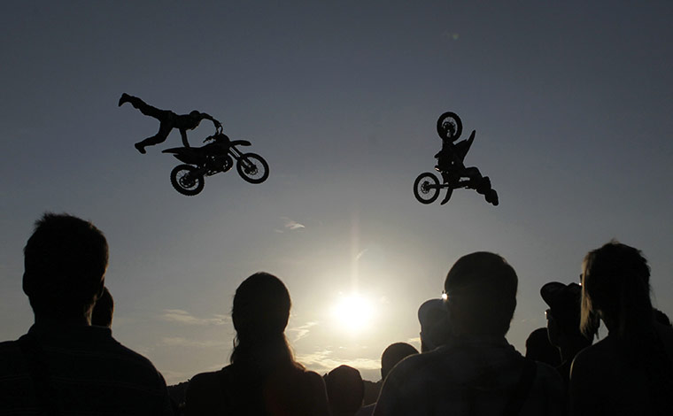 Прага, Чешская Республика: Люди смотрят на представление гонщиков на фестивале FMX Jam, вольный стиль