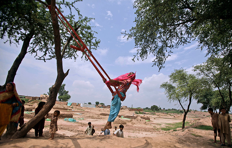 Исламабад, Пакистан: пакистанская девочка катается на качелях