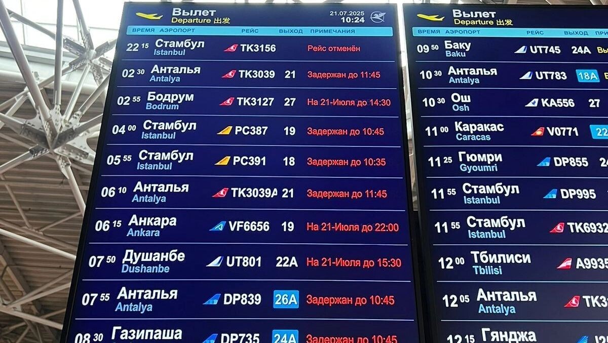 — Вылет должен был быть в 2:20 ночи в Стамбул. Регистрация на рейс начинались в 22:20. Мы приехали к десяти. Сначала все шло нормально. За 30 минут до вылета стали приходить сообщения о том, что рейс откладывается. В какой-то момент его просто отменили. Мы прошли назад паспортный контроль, подошли к стойке. Нам сказали, что все-таки рейс состоится, самолет стоит, но на табло было написано — отменен.