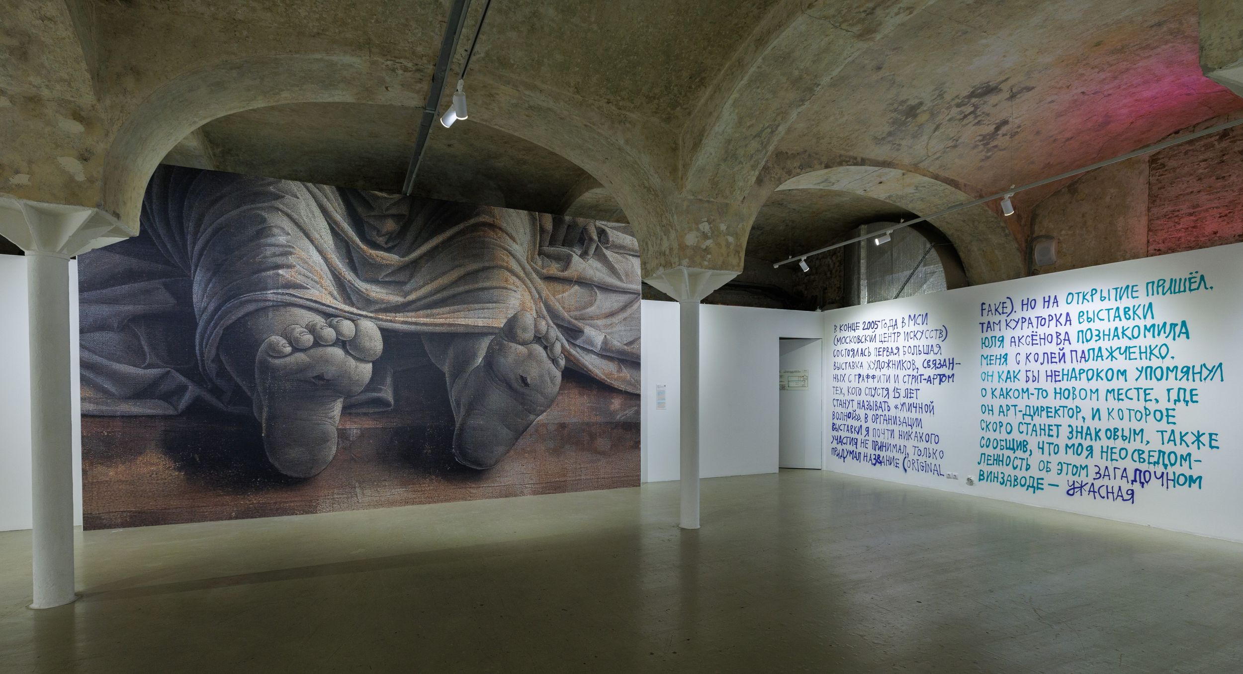 Дмитрий Гутов — художник, чьи произведения можно встретить в Третьяковке, Русском музее, ММОМА, МАММ, Stella Art Foundation, Эрарте, ЦСИ Луиджи Печи в Прато и Центре Помпиду в Париже. Именно его работа стала одной из тех, что были представлены на первой выставке ЦСИ Винзавод «Верю!» в 2007 году. Автор не только творец, но и преподаватель, искусствовед, и возможно, поэтому характерной чертой его творчества стала апроприация цитат философов и живописи великих мастеров прошлого. Так что и в проекте «Верю!» его масштабный объект «Стопы» — это увеличенный фрагмент картины Андреа Мантеньи «Мертвый Христос». Он был воссоздан на предыдущей выставке НИИ Архив.
