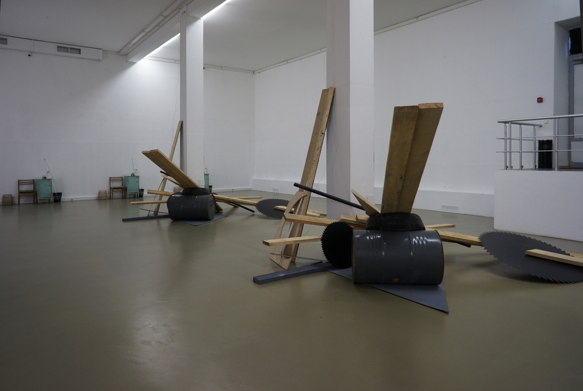 В 2011 году в галерее XL Петр показал одну из первых работ с мотивом пилы — «Прыгалку». Она напоминала изготовленные вручную из всякого мусора трамплины, с которых в свое время ныряли деревенские парни.