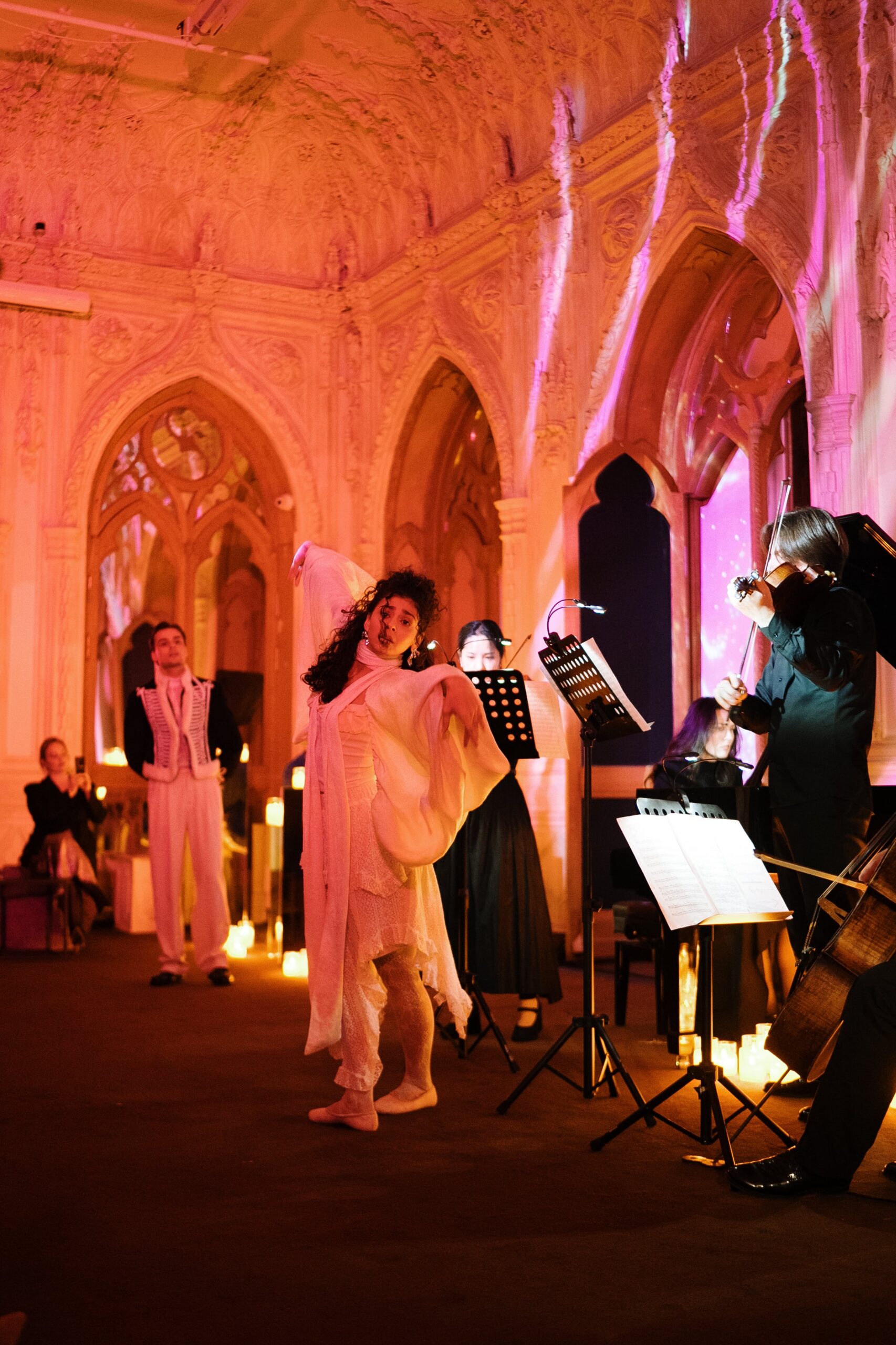 Центральным событием вечера стало эксклюзивное театрализованное шоу с эффектом полного погружения через текстурные образы и уникальную атмосферу, созданную актерской труппой ГИТИСа и независимым музыкальным проектом Île Thélème Ensemble.
