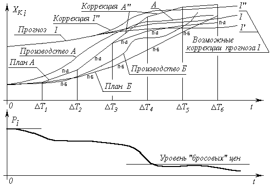 Ясно, что ошибка в прогнозе I , в последствие которой возникает коррекция прогноза I’ предпочтительнее, чем ошибка в прогнозе I’’, в последствие которой возникает коррекция плана A’’, поскольку коррекция I’ в общем-то не вызывает необходимости коррекции планов, в отличие от коррекции прогноза I’’ , вызванной ошибкой прогноза I.