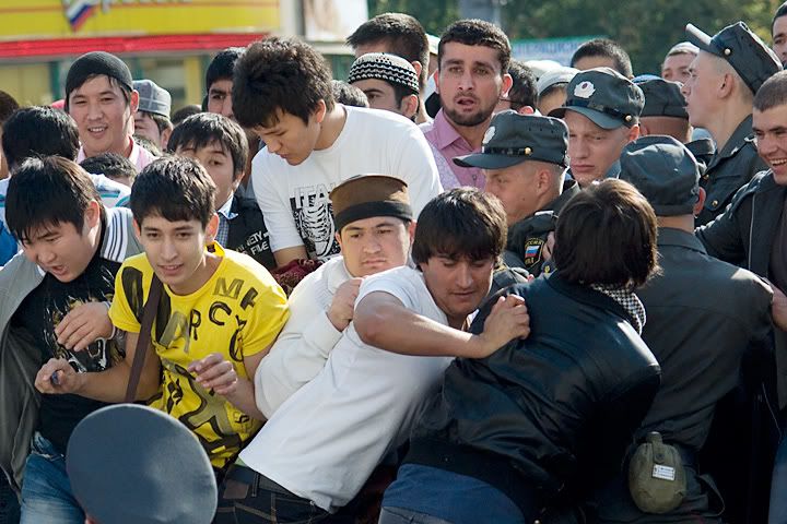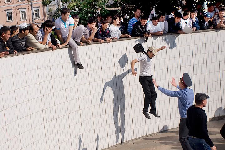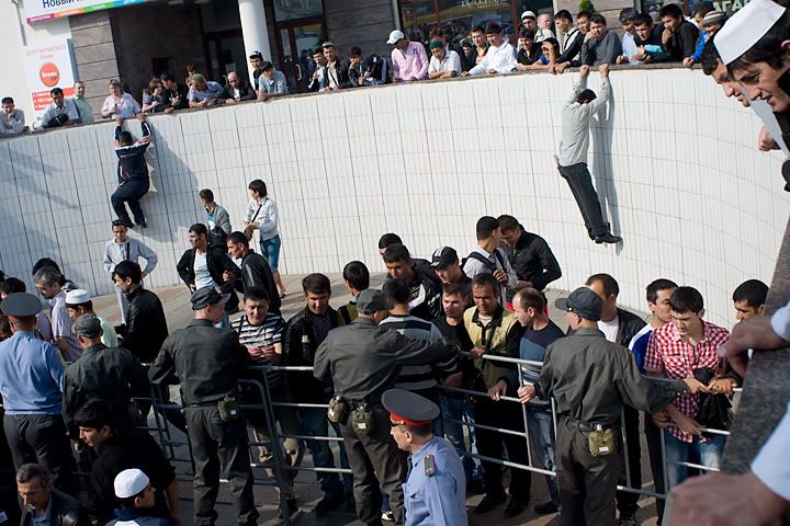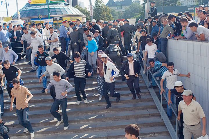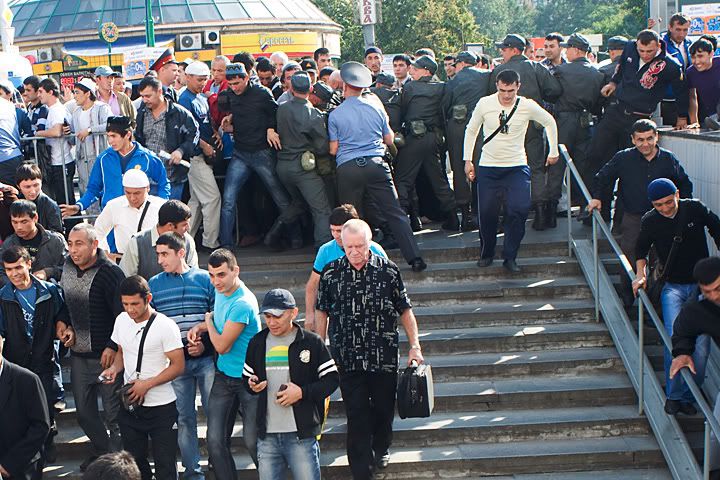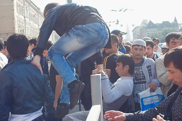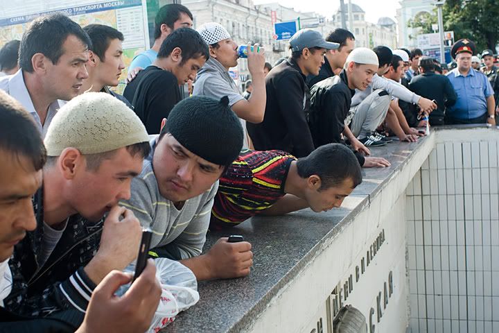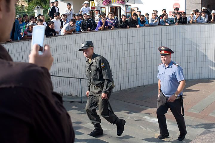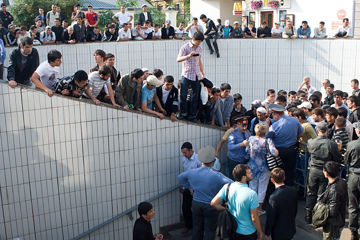 а это съёмка у метро сухаревской. после уразы-байрами народ пытается пробиться в метро через оцепление милиции. в общем-то, получается.