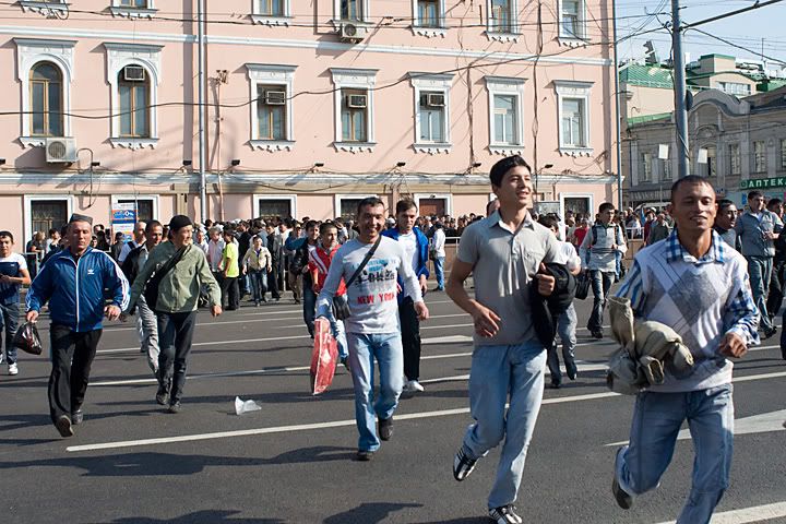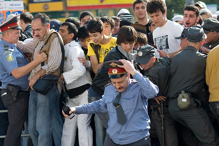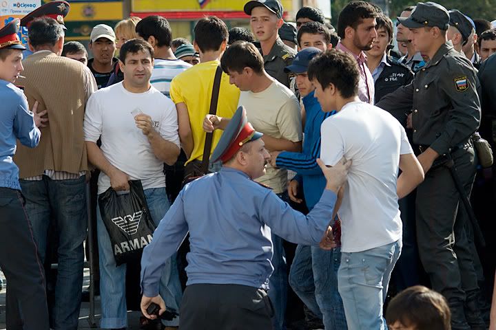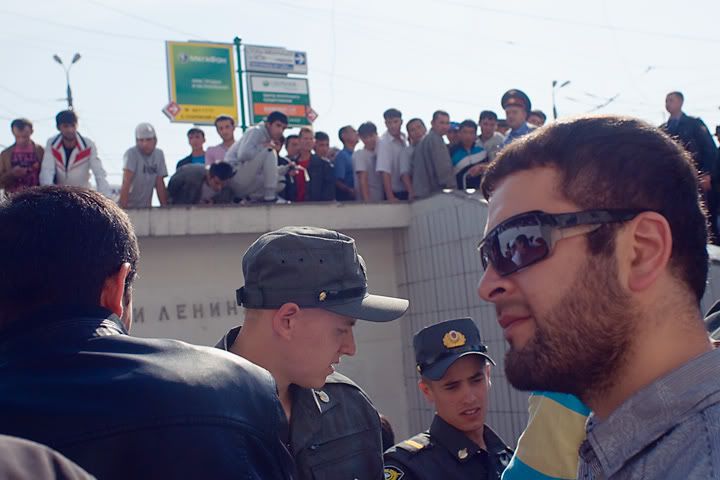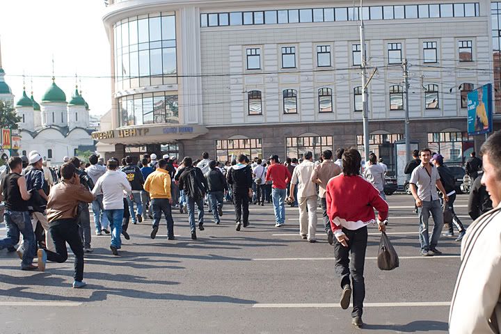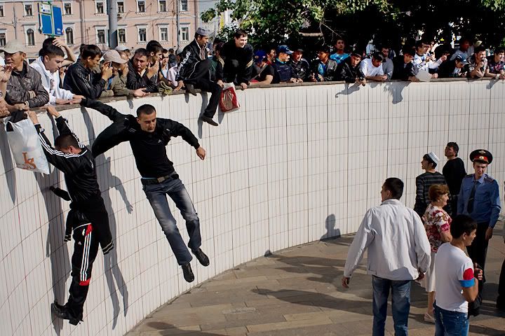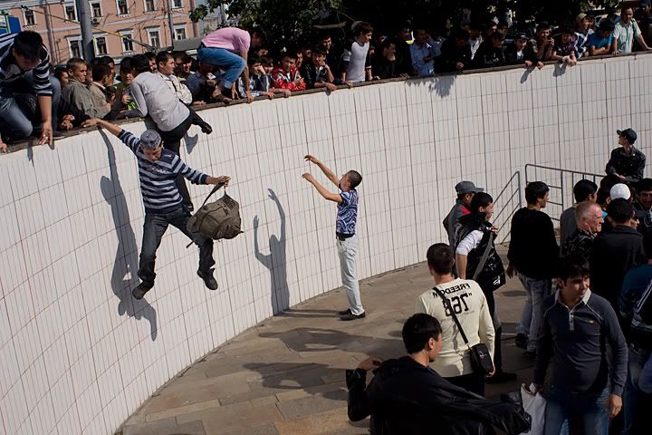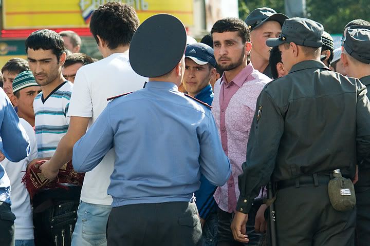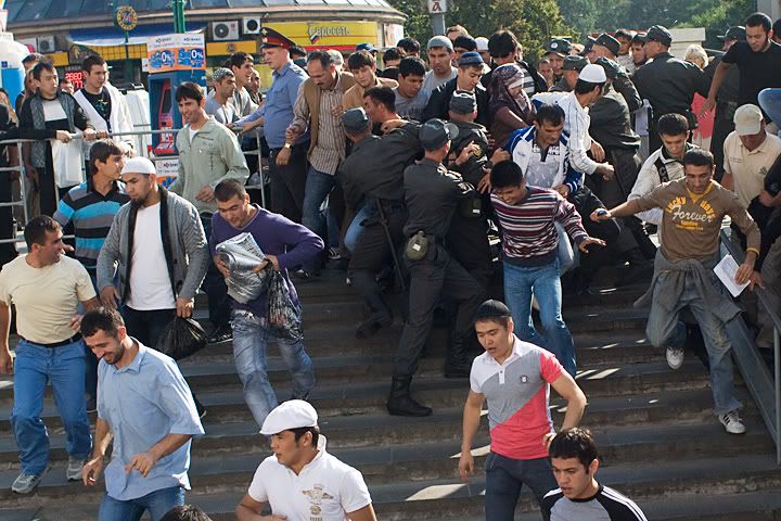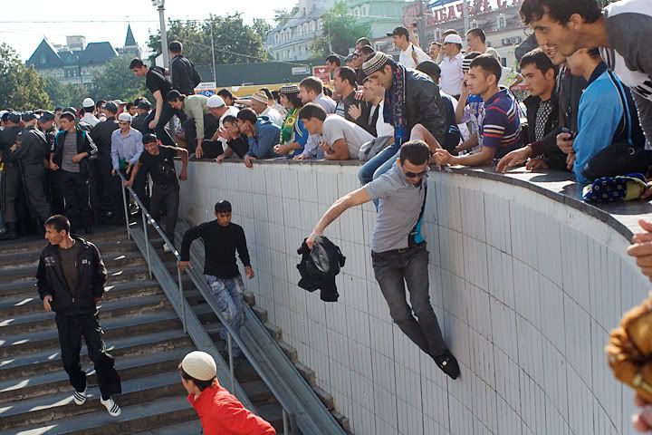 а это съёмка у метро сухаревской. после уразы-байрами народ пытается пробиться в метро через оцепление милиции. в общем-то, получается.