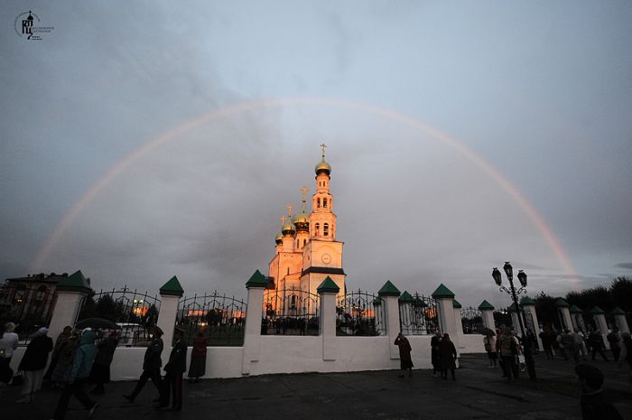 Почему же сразу глупость? Разве что в смысле неведения, потому что мы не понимаем механику происходящего. Сама по себе радуга, даже такой формы, никаким чудом не является, конечно. Но то обстоятельство, что она появилась в данном месте в данное время, скорее всего, является определенным знаком, свидетельствующем о том, что Кирилл с братией честно сделали свою работу. Я думаю, что есть повод порадоваться за абаканских православных.