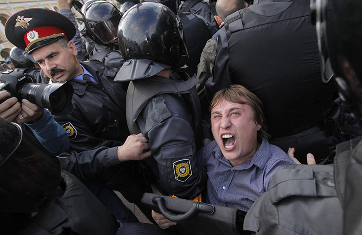 Санкт-Петербург, Россия: полицейские прессуют активиста-оппозиционера на митинге против кремлядей.