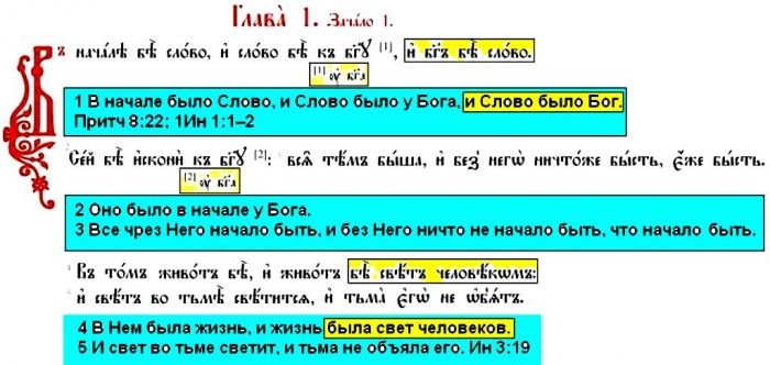 Как нетрудно заметить, варианты содержат принципиальные отличия. В церковном варианте «Бог был Слово», а в бытовом «Слово было Бог». Как легко понять, если первый вариант однозначно указывает на то, что Бог – это Слово, то во втором возникают варианты, и можно прочитать таким образом, что слово «Бог» было в начале всего сущего, когда ещё не было даже света.