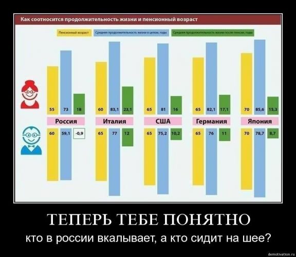 Есть много других вариантов. Бюджет тратится бездумно, миллиарды-триллионы выбрасываются практически на ветер.Если всё это учесть, то о повышении пенсионного возраста можно надолго забыть и поднять пенсии вдвое-втрое.