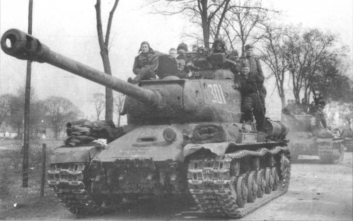 Прародителями "Танка Победы" - ИС-2 - стали тяжелый танк КВ-1 и средний KB-13. Почти одновременно с ИС-1 началось производство более мощно вооруженной модели ИС-2 (объект 240). Только что созданная 122-мм танковая пушка Д-25Т (первоначально имевшая поршневой затвор) с начальной скоростью снаряда 781 м/с позволяла поражать все основные типы немецких машин на всех дистанциях боя. В опытном порядке на ИС устанавливались 85-мм пушка большой мощности с начальной скоростью снаряда 1050 м/с и 100-мм пушка С-34.