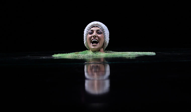 Севилья, Испания: циркачка во время репетиции своей группы Corteo Cirque Du Soleil,
