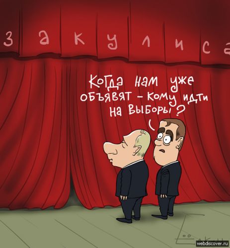 Расстроился мой ум, смутился дух, в душе творятся всякие бесчинства: я разучился выбирать из двух (из многих-то я прежде разучился). Страдаю, говорят, не я один, но остальные мучаются немо. Вот тут Волошин, мудрый господин, сказал, что есть проблема у тандема: хоть выборы нацелились в упор и драм в стране — не разгрести лопатой, а эти двое медлят до сих пор, не в силах сделать выбор небогатый. И сам я понимаю не совсем, рассматривая вызревшие фиги, — что за различье между П. и М.? Но ищем, раз уж нет другой интриги. Вон Юргенс до сих пор являет прыть: в который раз он данные итожит, твердя, что М — большое Можетбыть, а П есть полный П без всяких «может»; и я стоял бы на его тропе, когда б не верил, вслед единороссам, что лучше уж беспримесное П, чем тот же П, нависший под вопросом. Боюсь, что вся предвыборная рать, не видя мотивации и смысла, настолько разучилась выбирать, что вся страна в коллодии зависла. Господствует бессмысленная лесть, веселья в ней — как в мертвенном оскале… Тут Прохоров решился было влезть — так и его немедля обыскали, без повода, но в назиданье всем: не рыпайтесь, ребята, не беситесь! Хоть он, по сути, — те же П и М: в его инициалах явлен синтез.