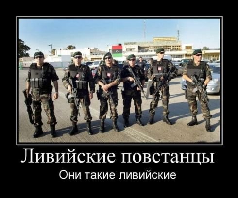 И что-же приключилось с "танковой дивизией" када "ливийские повстанцы" та-а-кие ливи-ийцы? И весь мир наблюдает, как законная армия долбит безмозглых и жадных "патриотов", жрущих друг друга как скорпионы в банке?