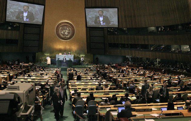 едва иранский лидер начал свое выступление с трибуны ООН, зал заседаний демонстративно покинули делегации, в частности, США, стран ЕС и Израиля. Это произошло, несмотря на то, что речь Ахмадинежада в этом году была довольно миролюбивой.