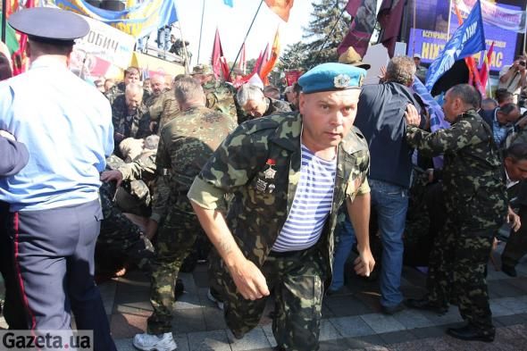 Глава парламентской фракции Партии Регионов Александр Ефремов попытался выступить перед тысячами "афганцев" и "чернобыльцев", но его оплевали, облили водой и вымазали неизвестной жидкостью. По словам самого "регионала", между депутатами и пикетчиками произошел "довольно сложный, эмоциональный и иногда даже мужской разговор".