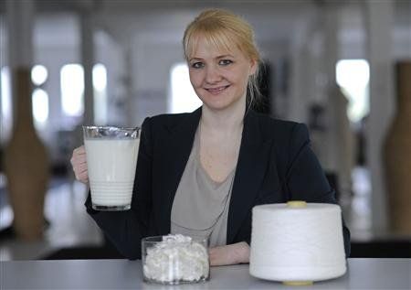 Молодой дизайнер из Ганновера 28-летняя Анке Домаске научилась делать одежду из молока. Называется новая ткань «кумилк» и почти полностью состоит из казеина — протеина, содержащегося в молоке. Для одного платья нужно примерно 6 литров молока. Его стоимость достигает 200 евро. Одежду называют практически вечной, потому что в процессе производства ткани молекулы исходного вещества связываются так, что в дальнейшем не разлагаются. Новость послужила поводом для большого количества комментариев.