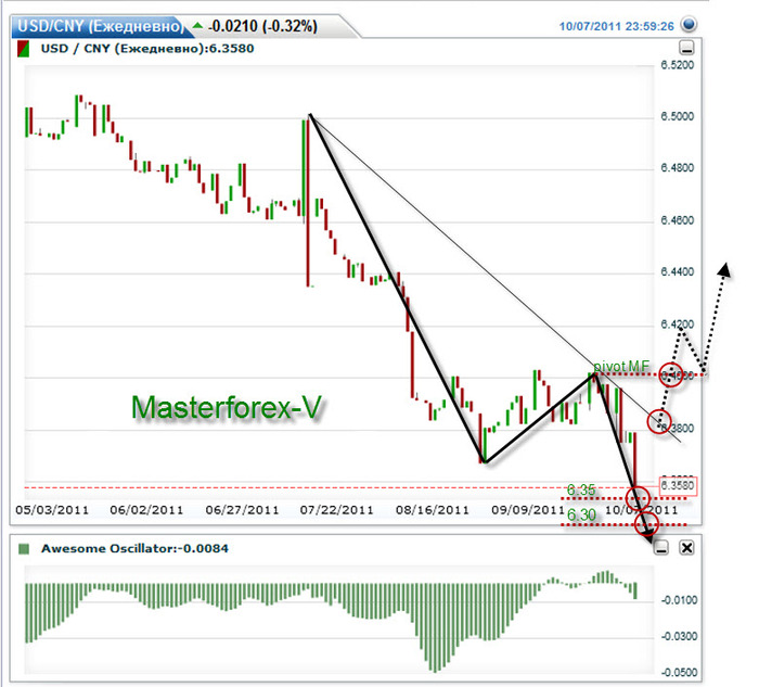 Курс китайского юаня, после повышения волнового уровня коррекции продолжил свой медвежий тренд, направленный на укрепление национальной валюты - отмечают эксперты факультета детального изучения торговой системы Masterforex-V.