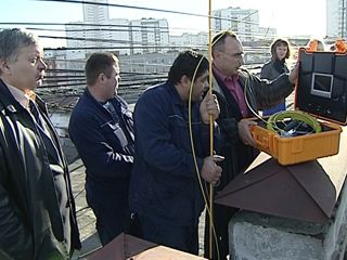 Прежде чем взять в руки новое оружие, они выжидали долго. Но терпение коммунальщиков лопнуло. К злостному неплательщику применяют крайнюю меру: перекрывают канализацию. Чтобы закрыть трубу, с крыши спускают специальный прибор. Для слесаря – это экзамен. К установке он готовился неделю. С первого раза не выходит. "В теории всегда легче, чем на практике", - говорит слесарь Александр Ричабеков.