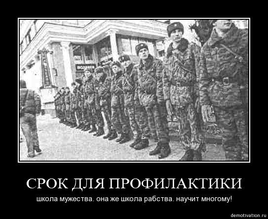 Работай, служи забесплатно! Ты же мужик! Ты должен Родине с пелёнок! Бесплатная и бесправная служба на властьимущих - это героизм и почёт! Если тебя унижают и тобой помыкают - терпи - ты же мужик! Ты в этом сам же и виноват! Безропотно превзнемогай "тяготы и лишения" воинской службы - на том свете всё окупится сторицей!