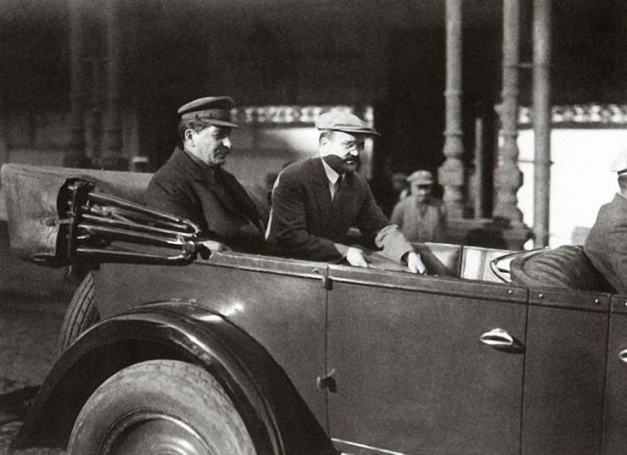 Эта фотография сделана в 1930г в г.Москве американским фотографом, к сожаленью автор не оставил своих данных. Как нам знакомо, из всех публикаций, И.Сталин работал допоздна и ночевать возвращался поздно ночью. А эта фотография сделана днем и судя по тени на спутнике пассажира Молотове, это уже было после 8 или 9 час. утра.
