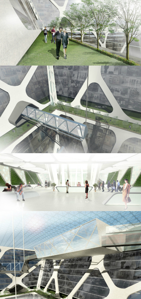 Первые десять этажей архитекторы готовы отдать музеям, следующие десять – под торговлю и жильё, потом будут 35 уровней офисов и так далее (иллюстрации BNKR Arquitectura).