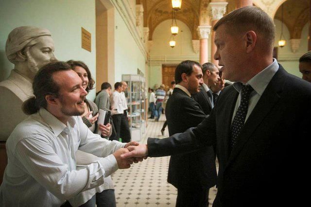 Я вызвезжен с журфака, журфаковский студент. Ко мне туда, однако, приехал президент.