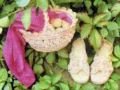 Для плетения лукошка необходимо: полиамидной нити бежевого цвета 170 м диаметром 2 мм, 8 м нити молочного цвета диаметром 1,5 мм и овальное кольцо размером 16X24 см из проволоки диаметром 3 мм.