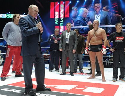 Специально ли выписали под это дело из-за океана несчастного ветерана или так совпало — не суть, главное, все прошло как по маслу: наш измолотил ненашего, и на ринг, набрать очков в свой черед, вышел Путин.