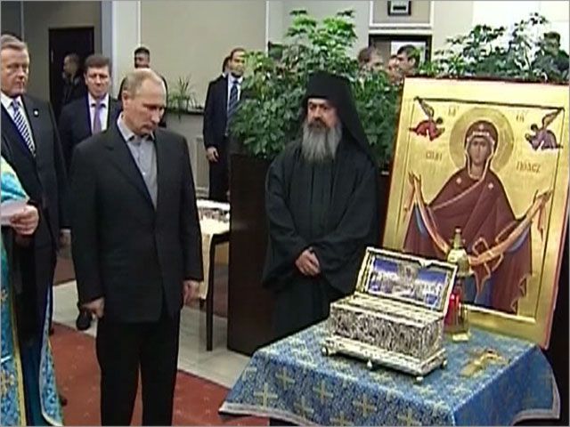 - Пока предположение. Глухие какие-то слухи ходят о том, что... Господин Якунин пока еще не придумал, что может быть более священным, чем пояс Богородицы. Чаша Грааля, может быть, разве что. Ходят слухи про главу Иоанна Предтечи. Но, мне кажется, для женской религиозности глава Иоанна Предтечи менее понятна, чем пояс Богородицы.