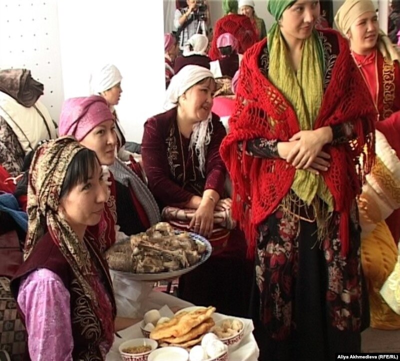 Молодые невестки предлагают свои кулинарные блюда на конкурсе невесток. Талдыкорган, ноябрь 2011 года