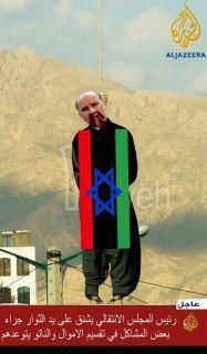 Одновременно на стенах домов в Бенгази появились фотографии, изображающие повешенного Джалиля. Algeria ISP отмечает массовый характер расклейки и то, что фотографии никто не снимает, так как мятежники в Восточной Ливии поддерживают протестующих против ПНС. «Аль-Джазира» также показала сюжет с этими фотографиями, демонстрирующими, какой судьбы мятежники желают своему бывшему лидеру.