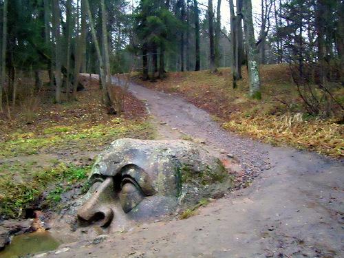 Друзья! Мы с вами сейчас находимся на территории Дворцово-паркового ансамбля Сергиевка или усадьбы Лихтеншеинских, что под Питером, в пределах Старого Петергофа. Уникальное по красоте местечко. Но решила все-таки начать с самого необычного в этом месте - ГОЛОВЫ. Никто толком не может объяснить настоящую правду о ней, поэтому предлагаю несколько легенд, а вы уж сами решите или, может быть кто-то знает еще что-то.