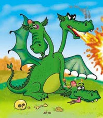 Лежит трёхглавый дракон, спит. Одна из голов откравает глаз и тихонечко подталкивает другую: