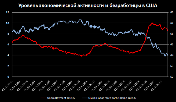 2)Уровень экономической активности (labor force participation rate) = рабочая сила/Кол-во людей трудоспособного возраста.