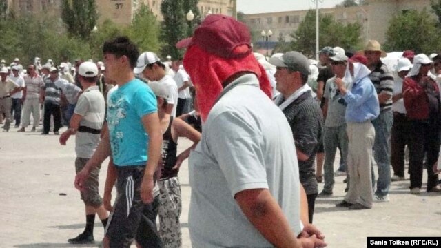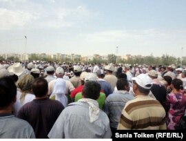 Бастующие нефтяники с семьями на площади Независимости. Жанаозен, 10 июля 2011 года.