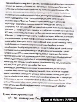 Фотокопия листовки, призывающей присоединиться к бастующим нефтяникам. От имени «Ангелов-хранителей» такие листовки распространяются в Жанаозене. 11 июля 2011 года.