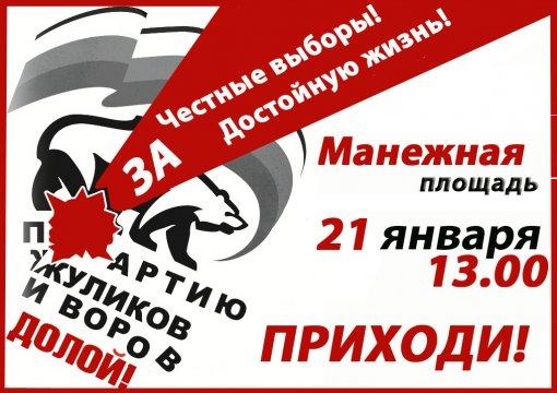 В субботу, 21 января 2012 года в 13.00 начнется митинг «За честные выборы и достойную жизнь».