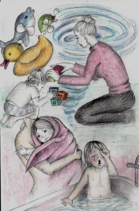 Няня сама испугалась, быстро открыла слив ванной, и в образовавшуюся воронку стали закручиваться лежащие в воде игрушки. Малышка представила, что и ее может втянуть в себя этот кружащийся водоворот.