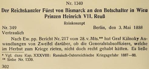 Там же опубликовано конфиденциальное письмо Бисмарка немецкому послу в Вене, принцу Генриху VII Ройсс.